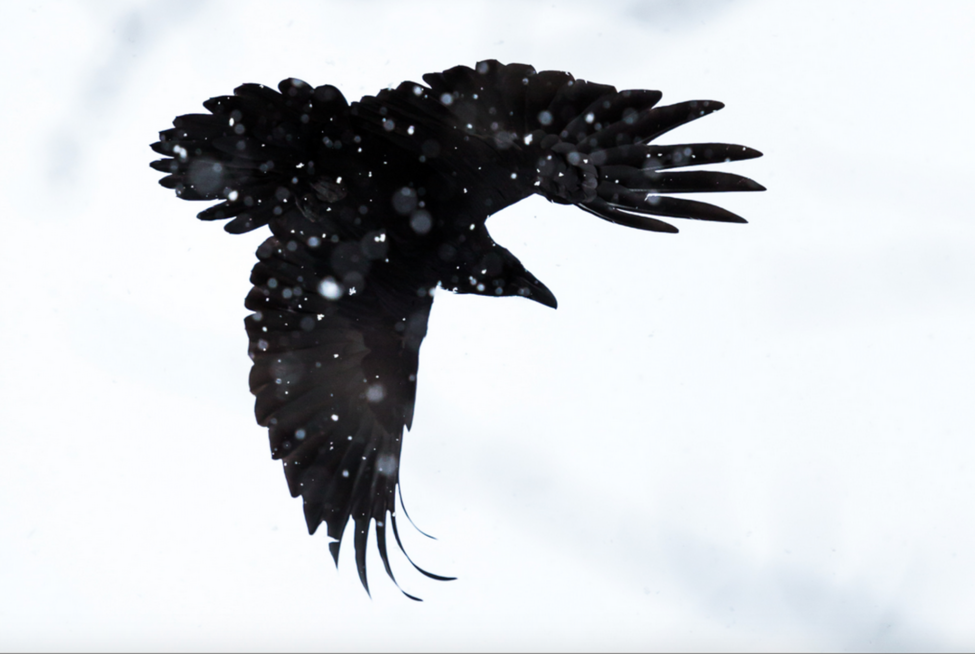 As we were training this morning, a raven was chasing us down the trail. Swooping left to right, landing on trees to watch and then catch back up with us, it made a long lasting game. Not just on training runs, but also in the kennel, ravens often play with the dogs throughout the winter months.